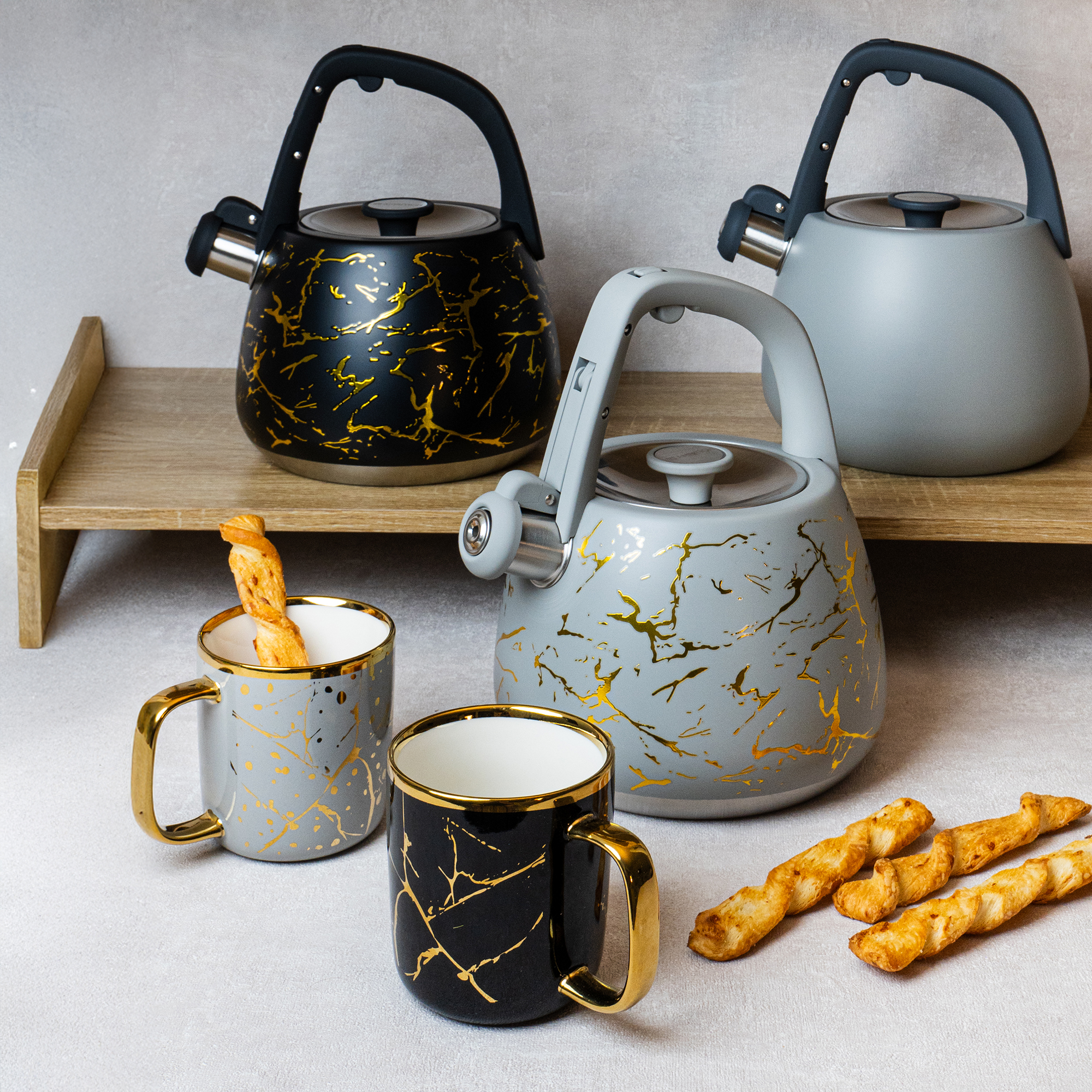 Czajnik Tower Marble z motywem złotego marmuru to połączenie elegancji, funkcjonalności i nowoczesnego wzornictwa. Stylowy czarny kolor ze złotym, marmurowym wzorem nadaje mu luksusowy charakter, dzięki czemu stanowi nie tylko praktyczne wyposażenie kuchni, ale również jej efektowną ozdobę. Doskonale komponuje się zarówno z klasycznymi, jak i nowoczesnymi aranżacjami wnętrz.