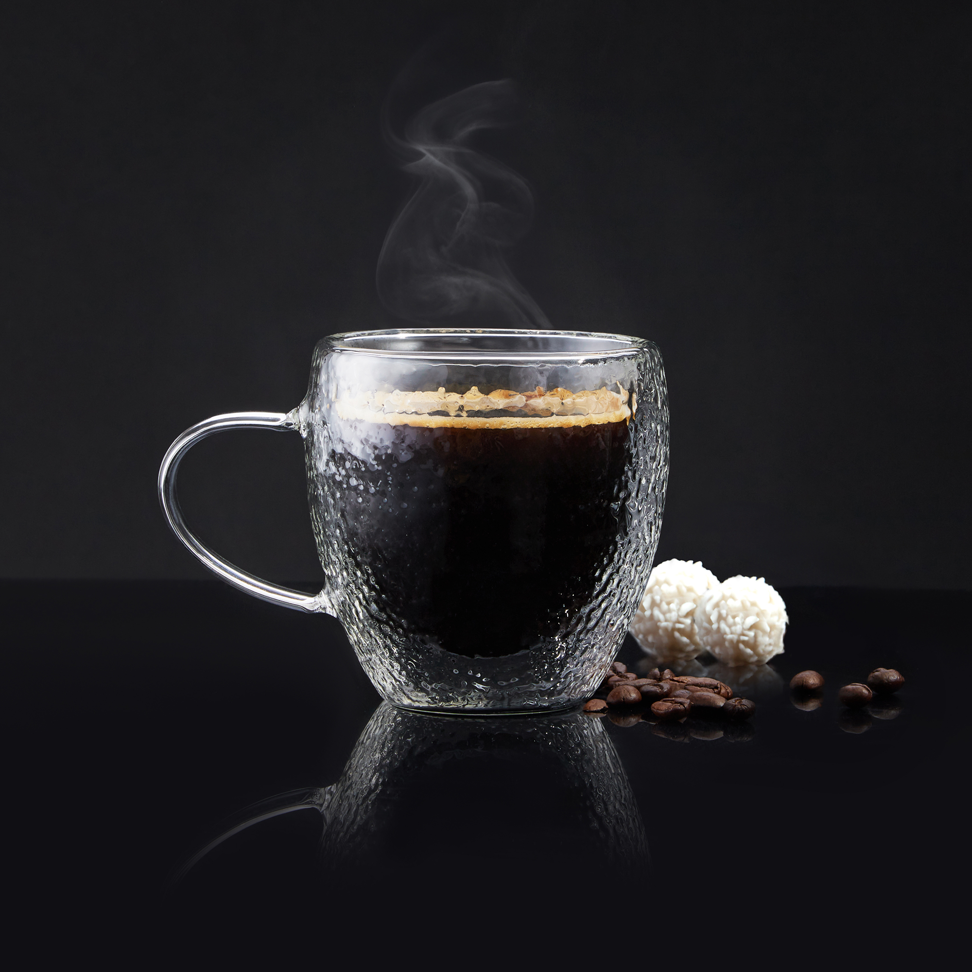 Podwójne ścianki skutecznie utrzymują ciepło kawy lub herbaty, a w przypadku zimnych napojów zapobiegają skraplaniu się wody na zewnętrznej powierzchni szkła. Ergonomiczne ucho gwarantuje wygodne i bezpieczne trzymanie bez ryzyka oparzenia.