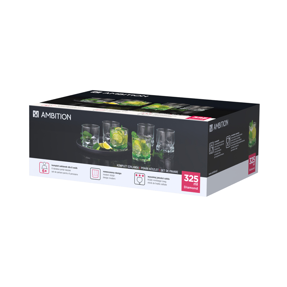 Komplet 6 szklanek niskich Diamond 325 ml – Ambition