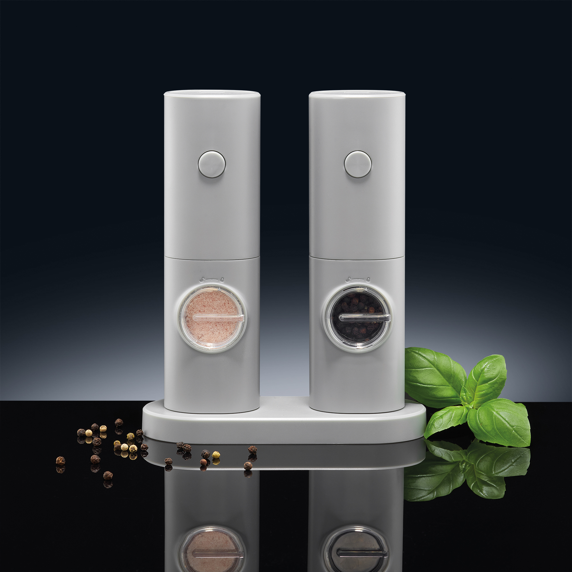 Komplet elektrycznych młynków do soli i pieprzu Mellizo szary AMBITION