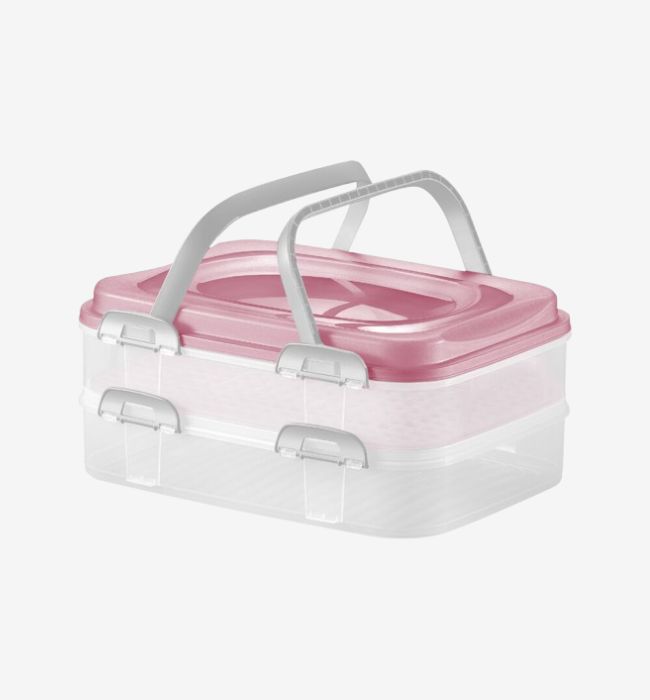 Pojemnik na ciasto z pokrywą dwupiętrowy 40x30x18 cm Dolce DOMOTTI różowy