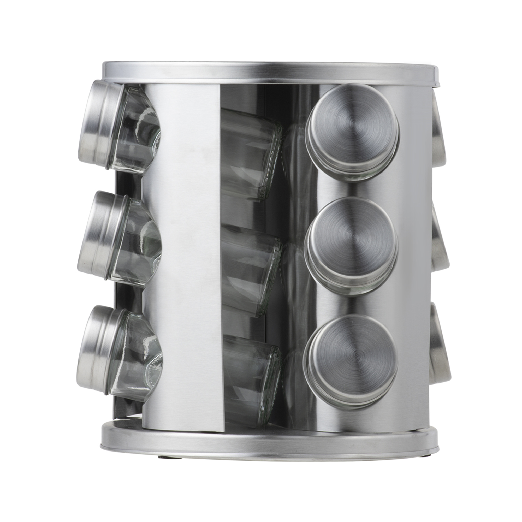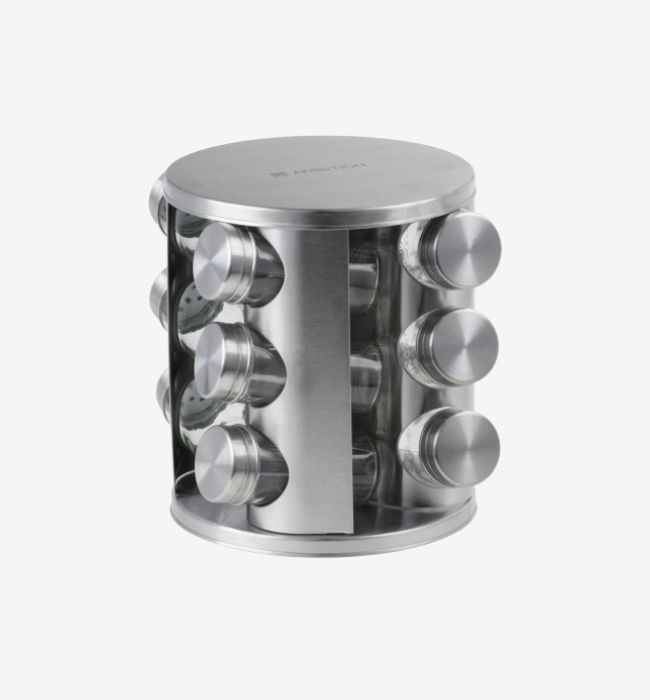 Zestaw składa się z 12 szklanych słoiczków umieszczonych na stabilnym stojaku. Dzięki temu wszystkie przyprawy są zawsze pod ręką, a blat kuchenny pozostaje uporządkowany. Przezroczyste ścianki umożliwiają szybkie sprawdzenie zawartości oraz ilości przypraw bez konieczności otwierania pojemników.